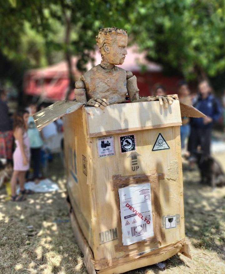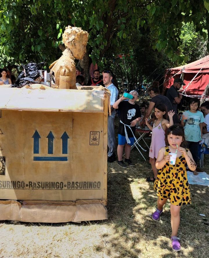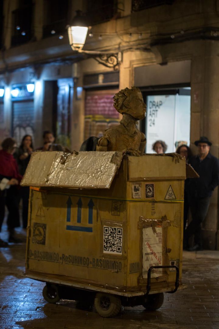 Basuringo is available as a ridiculous moving site specific show with one actor and an electro-puppeteer, that is ready for almost anything!.