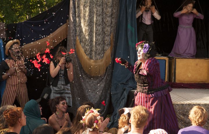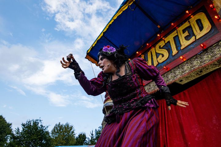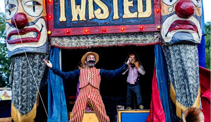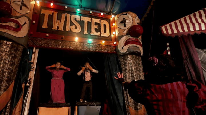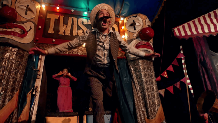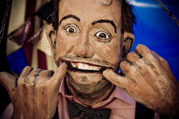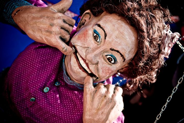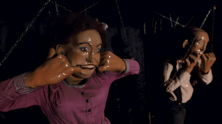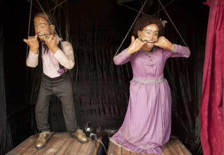 La màgia, la bruixeria i el ritual secret del místic erudit es troben amb el ridícul i dos titelles automatitzats de mida natural.